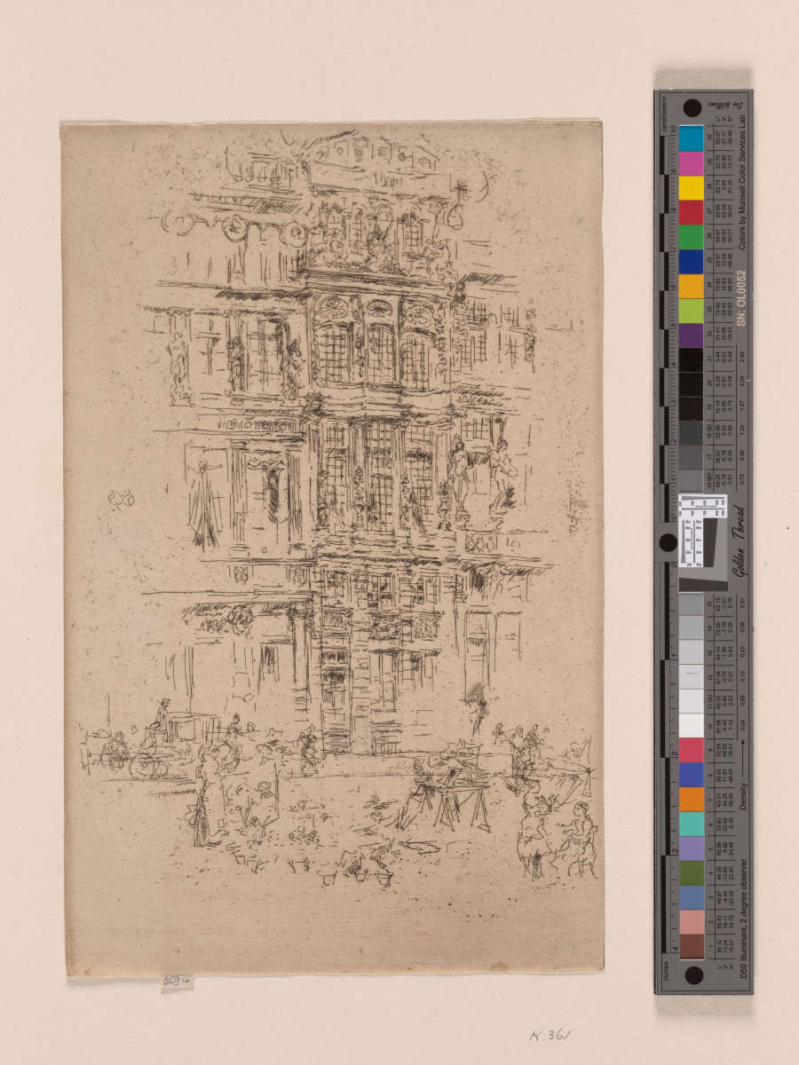 Marks: Stamped in brown ink on verso:R.I.S.D./MUSEUM/OF ARTsurrounded byPROVIDENCE/RHODE ISLANDall inscribed in circle. Stamped in gray ink on verso:HW = Harris G. Whittemore collector mark (Lugt 1384a) Partial collector's mark (cut off) stamped in blue ink on tab on verso:Howard Mansfield collector mark (Lugt 1342) Watermark:Shield over initials GR (difficult to make out details of shield) Identification
