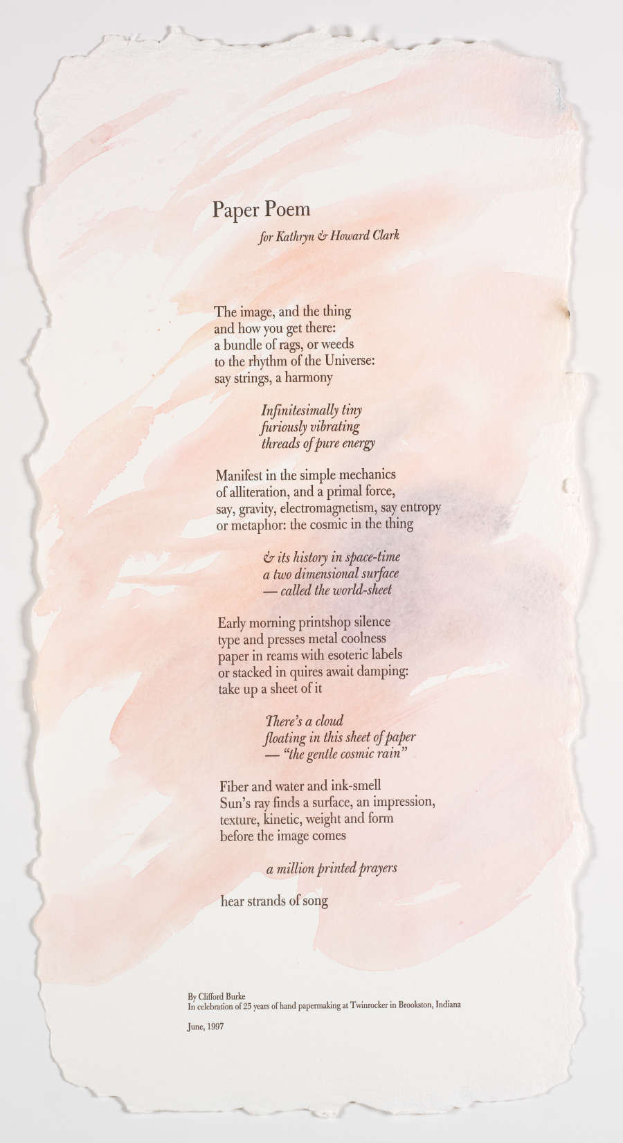 Paper Poem in Celebration of Twinrocker's 25th year, 1997