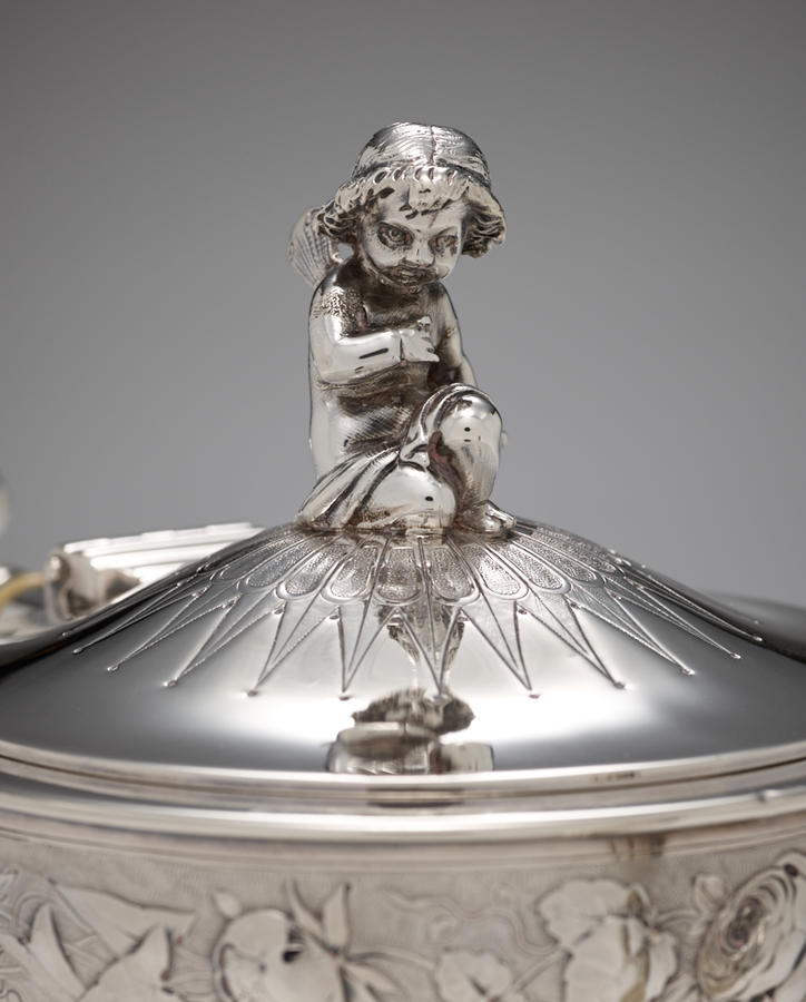 Marks: Stamped on underside of teapot: "D / 500 / [Lion/Anchor/G] / STERLING /6 1/2 PINTS / 1" Credit / Object Number