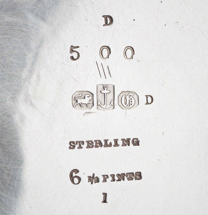 Marked: D / 500 / [lion] [anchor] G D / STERLING / 6 1/2 PINTS / 1.