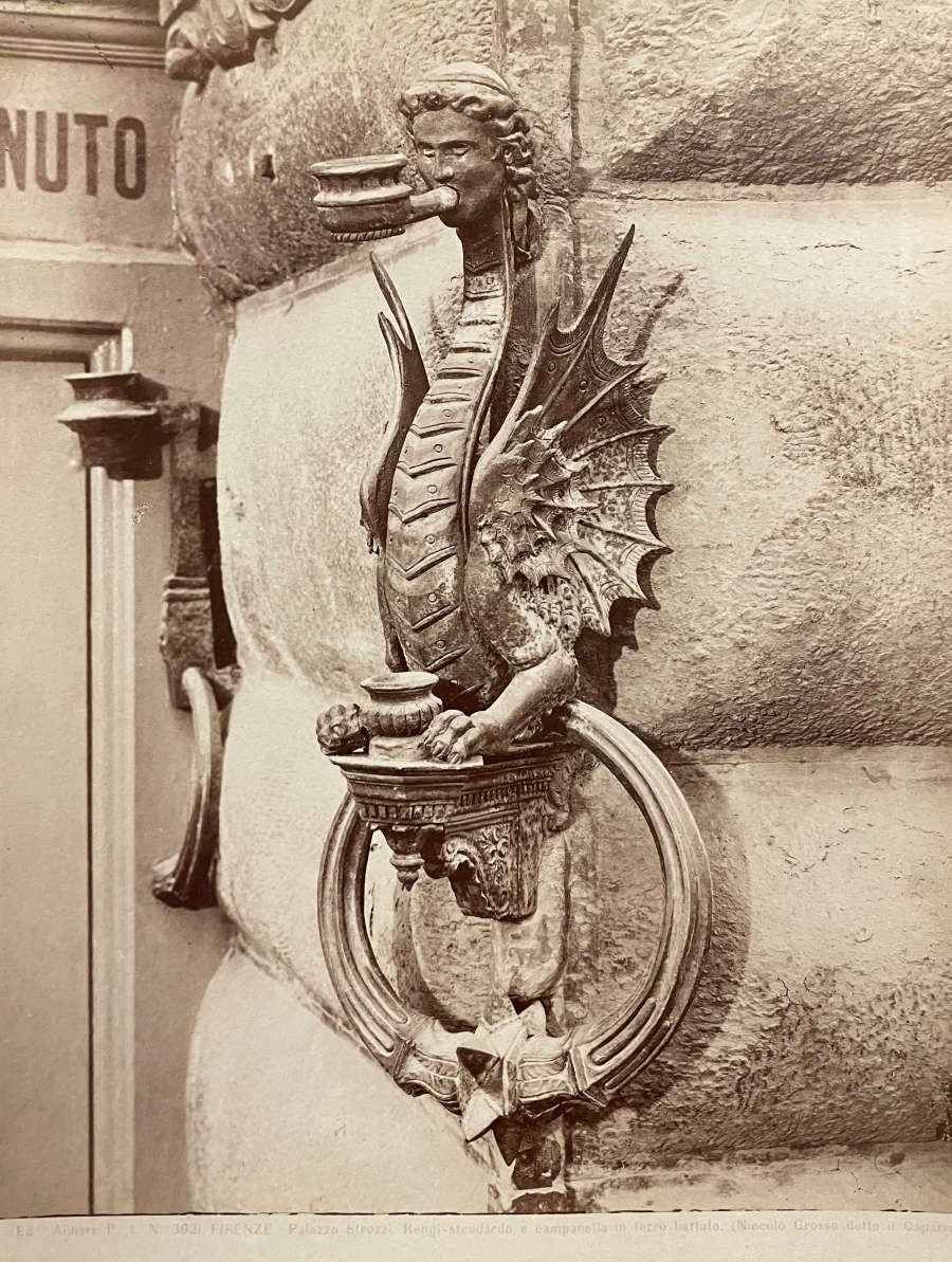 P.e. I.a N.o 3021 Firenze--Palazzo Strozzi. Reggi--stendardo e campanelia in ferro battuto. (Niccolo Grosso detto il Capana)