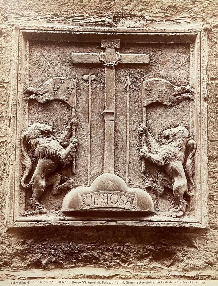 P.e I.a N.o.3677. Fireneze--Borgo SS. Apostoli, Palazzo Pettini, Stemma Acciaioli e dei Frati della Certosa Fiorentina