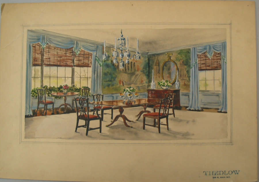 Marks: On recto in blue ink stamp, "THEDLOW / 146 E. 55th ST.", and on verso in blue ink stamp: "Designed for / DATE / SCALE / THEDLOW / 146 E. 55 ST. NEW YORK CITY" (the stamp on verso is a bit smeared).