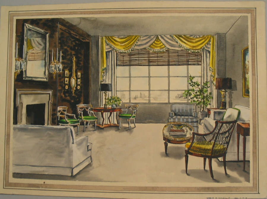 Marks: On verso in black ink stamp: "THIS SKETCH IS THE / PROPERTY OF / THEDLOW INC. / and must be RETURNED", and "THEDLOW, INC. / 146 EAST 55TH ST. / NEW YORK 22, N.Y." Credit / Object Number