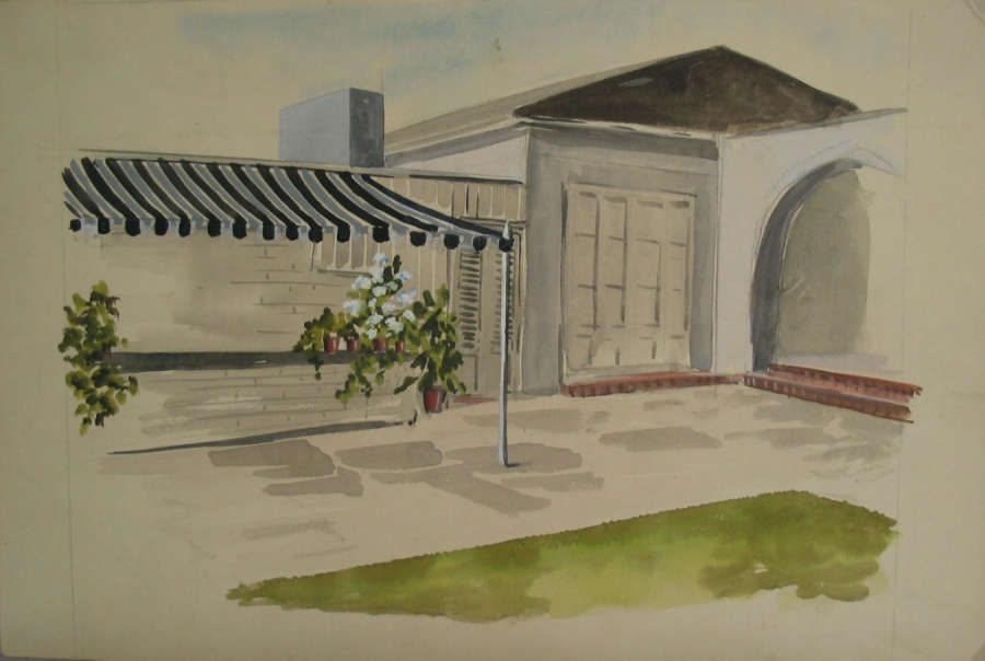 perspective views of porches, outdoor rooms, recreational rooms, etc. and a kitchen, ca. 1920-ca. 1970