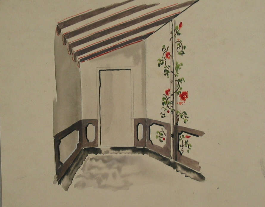 Calculations in pencil on verso: "46, 59, 105 / 9 1/2 / 65, 46 1/2, 111 1/2 / 10 11"