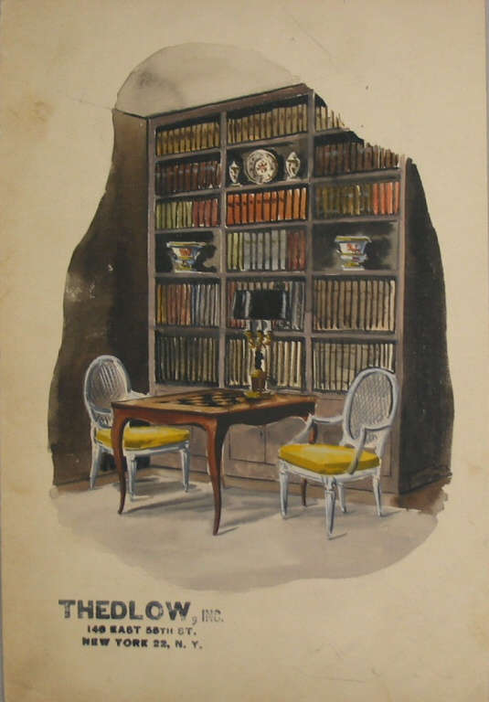 Marks: On recto: Thedlow stamp on recto; "THEDLOW, INC. / 146 EAST 55TH STREET / NEW YORK 22, N.Y."; on verso: "THIS SKETCH IS THE PROPERTY OF THEDLOW INC. and must be RETURNED".