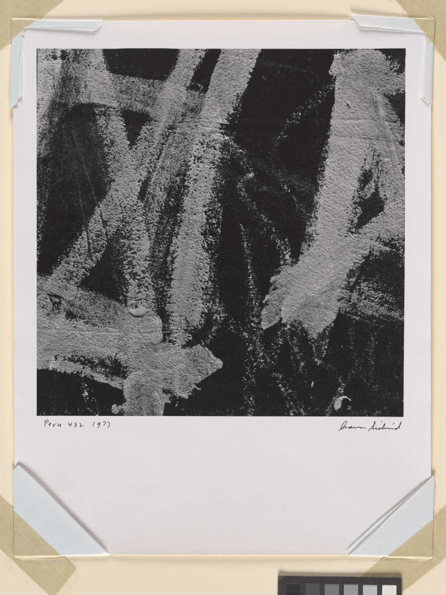 Signed in pen, LR:Aaron Siskind; inscribed by artist in pen, LL:Peru 432 1977; verso, bottom in pencil:P 432 3 / 77 5 6