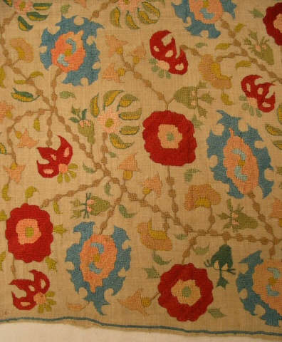 Linen, silk; plain weave, embroidery (double running stich, self couching stich)