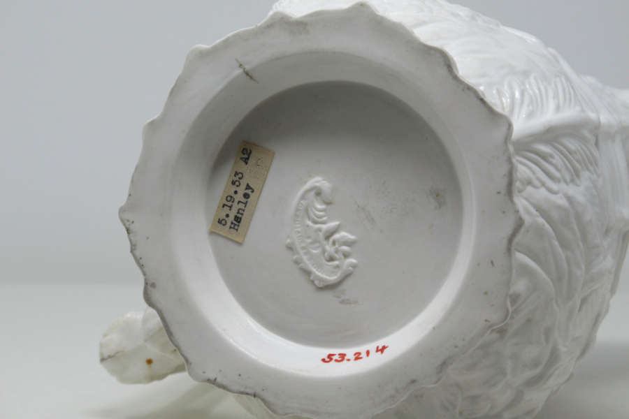 Marks: Scrolled leaf in relief impressed, on bottom:WISDOM & POVIDENCE; no factory mark