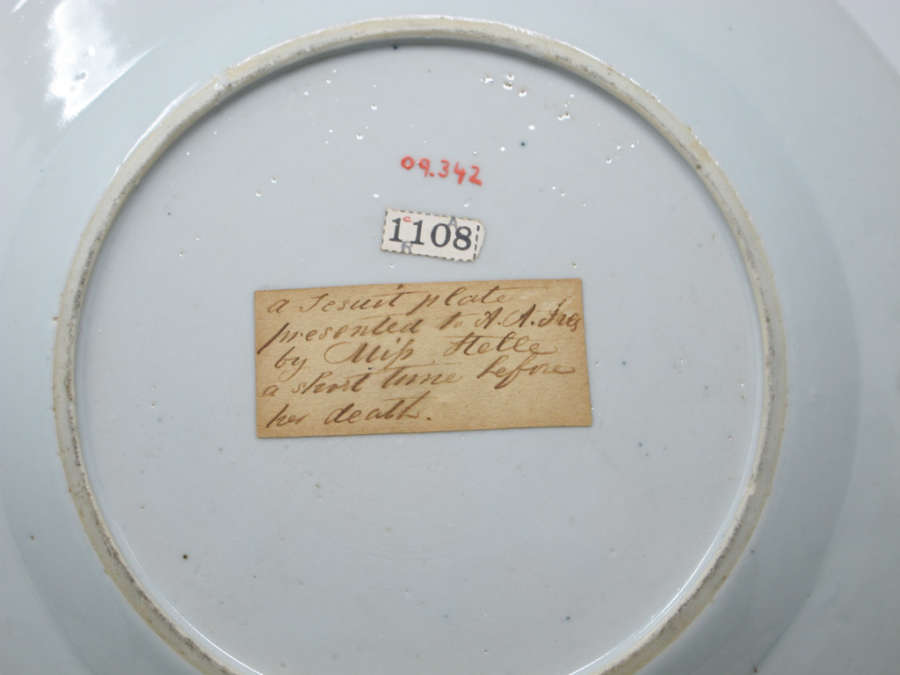 Old label:"A Jesuit Plate presented to Hope B. Ives by Miss Stelle a short time before her death"