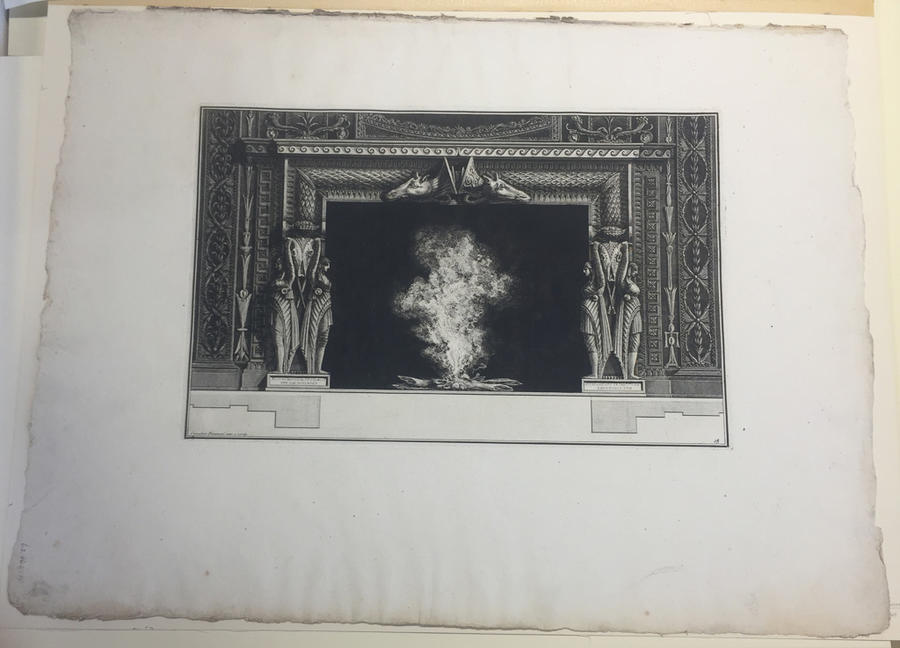 The images on this website can enable discovery and collaboration and support new scholarship, and we encourage their use. This object is in Copyright. This object is Plate 15: Chimneypiece in the Egyptian style with the accession number of 63.066.15. To request new photography, please send an email to imagerequest@risd.edu and include your name and the object's accession number.