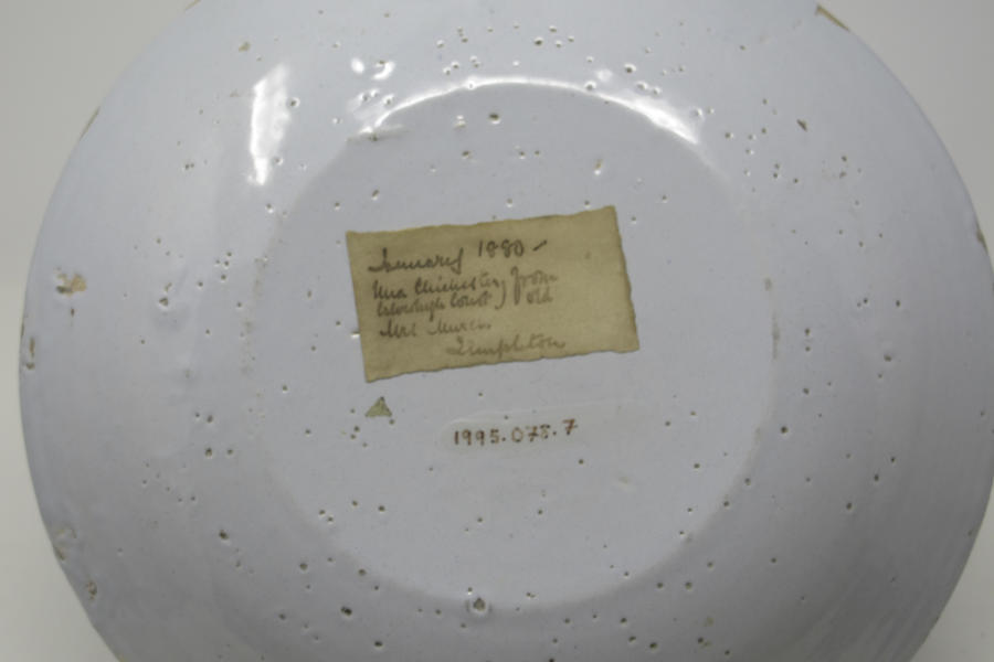 Label: Old gummed paper label attached to underside inscribed in ink: January 1880 - /Mrs. Chichester, from [?] court. Old. Mrs. Murch/Duplicate (?)