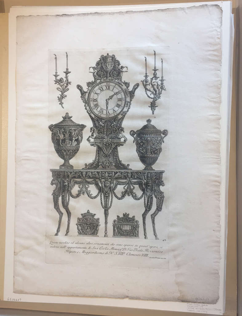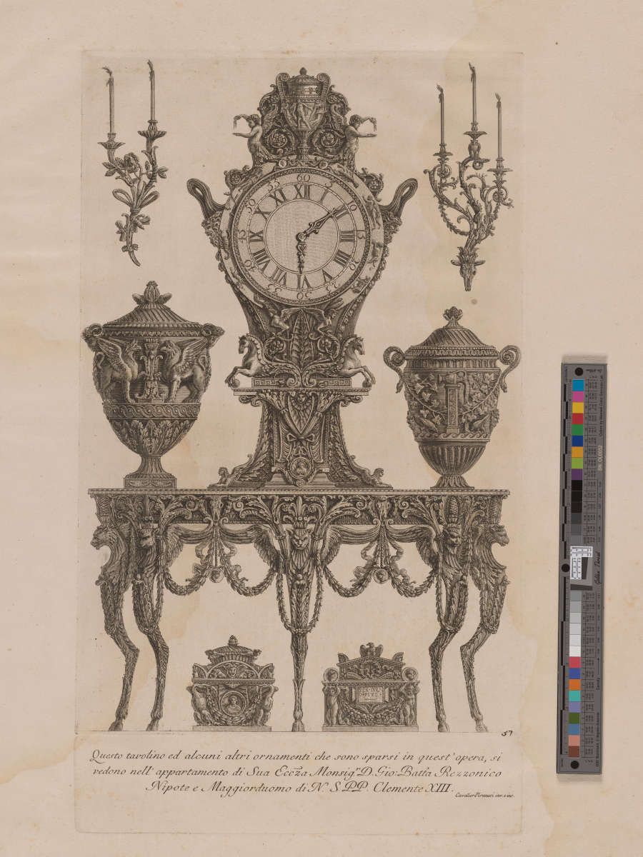 Lettered on the bottom plate: "Questo tavolino ed... Clemente XIII."; lettered LR on bottom plate: "Cavalier Piranesi inv. e inc."