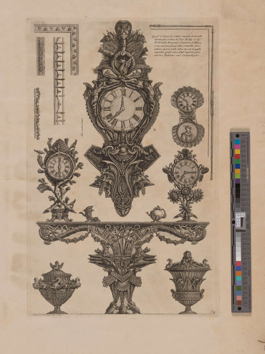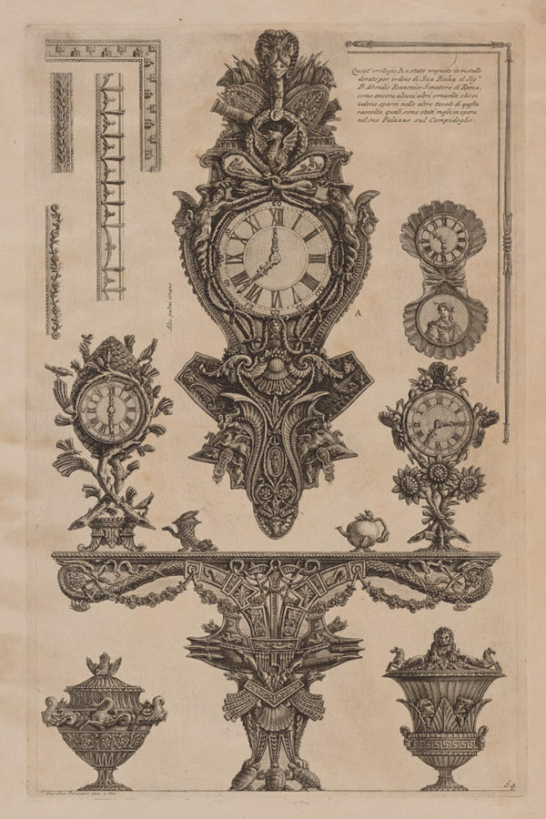 Plate 64: Furniture and a clocks is designed for Senator Rezzonico