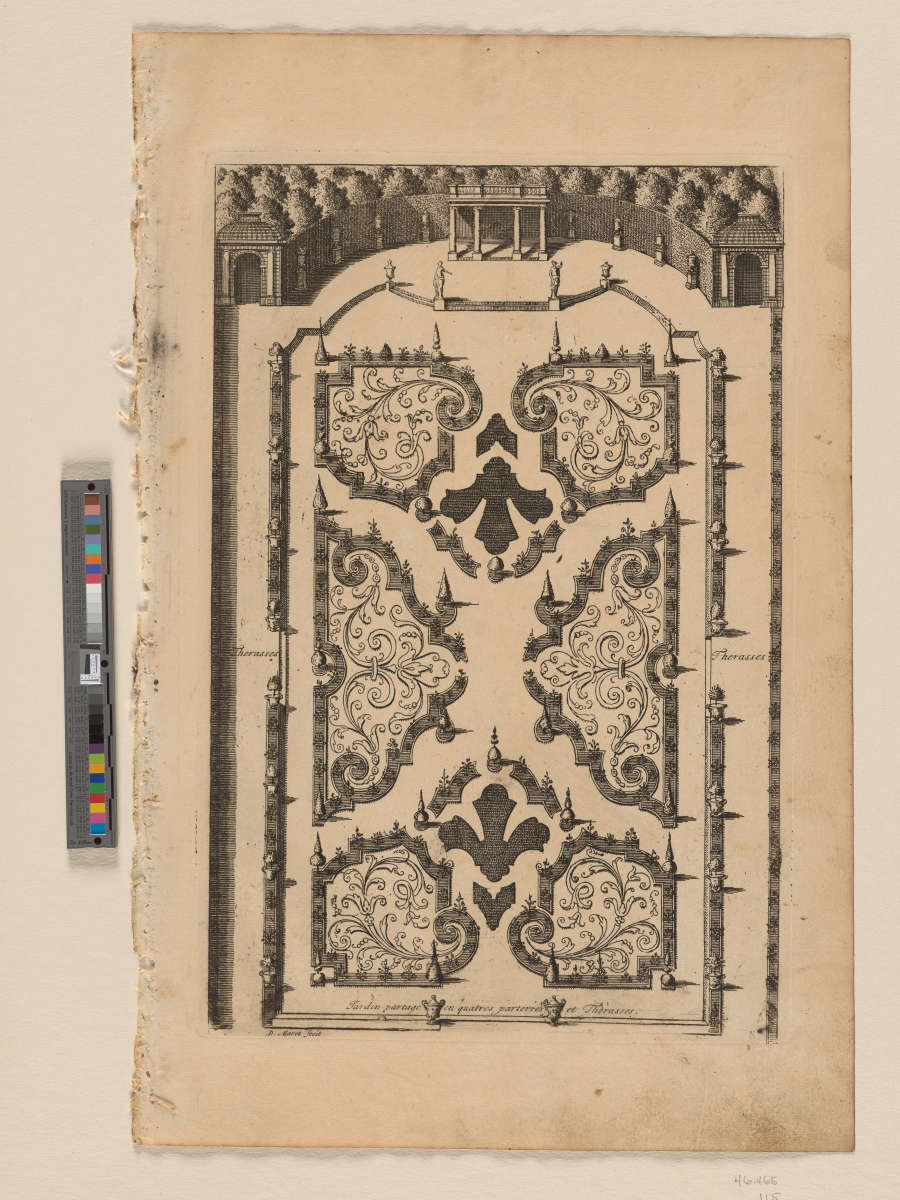 Lettered: LC: "Jardin Partage En Quatres Parterres et Therasses"