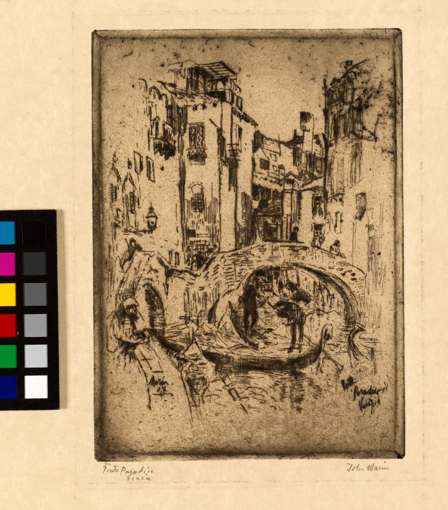 Original--Recto:In pencil under platemark on left:Ponte Paradiso/ Venice ; signed on right:John MarinVerso:In pencil in LL corner:24.417In Plate--In LL:Marin/ 07 ; in LR:Ponte Paradiso/ Venezia