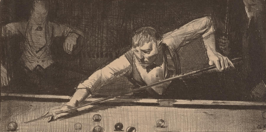 Original--Recto:in pencil signed, LR:Geo Bellows ; inscribed, LL:Bolton Brown -imp- ; in LL corner:Pool Player . no 58 ; in LR corner:B. 52In Plate--Initialed, LR:GB