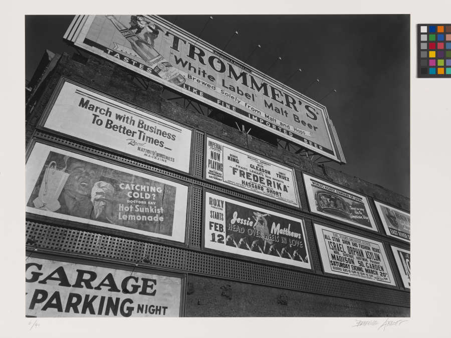 signed in pencil, lower right; stamped, verso: “BERENICE ABBOT/Retrospective//Published by Parasol Press, Ltd., /1982/