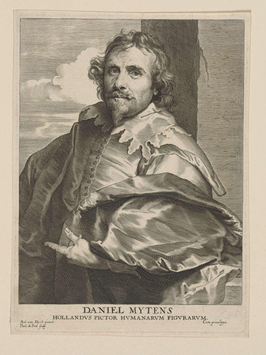Verso:in pencil inscribed, LL:W56 VI; in LC:1y; in LR:116/3In Plate:Titled, LC:DANIEL MYTENS/HOLLANDVS PICTOR HVMANARVM FIGVRARVM.; in LL:Ant. van Dyck pinxit./Paul. du Pont sculp.; in LR:Cu