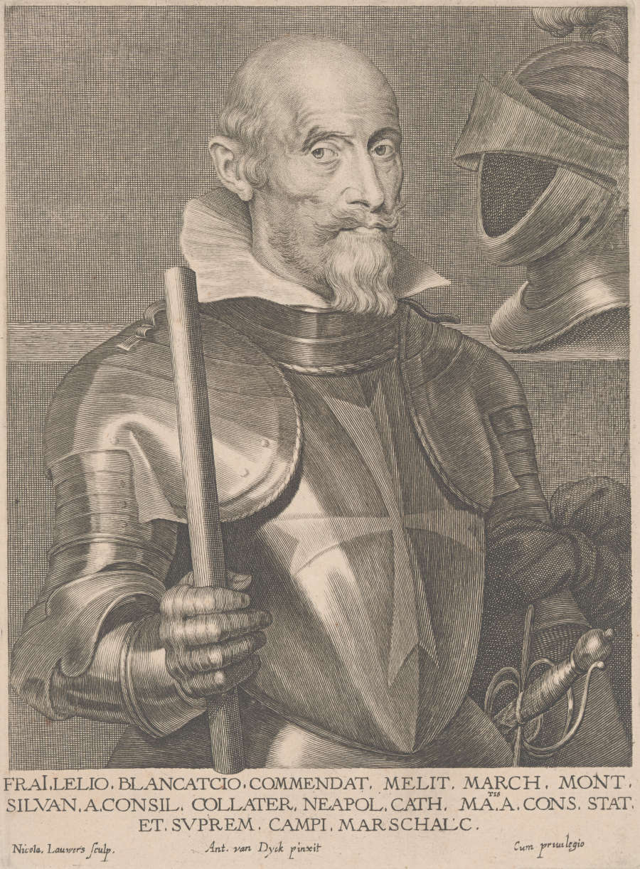 Verso:in pencil, LL:33-20In Plate--In LL:Nicola Lauwers sculp.; in LC:Ant. van Dyck pinxit; in LR:cum priuilegio; titled within 3-line Latin inscription:FRAI. LELIO. BLANCATCIO. COMMENDAT. M