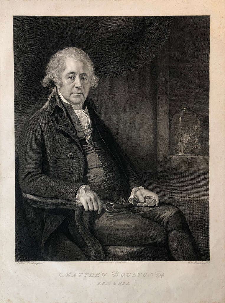 Lettered below image with "Matthew Boulton Esq. // F. R. S. & F. S. A." and production details: "Sir Will.m Beachey pinx.t"'; "Published May 1. 1801 by W.m Sharp, London"; and "Will.m Sharp sculp.t"