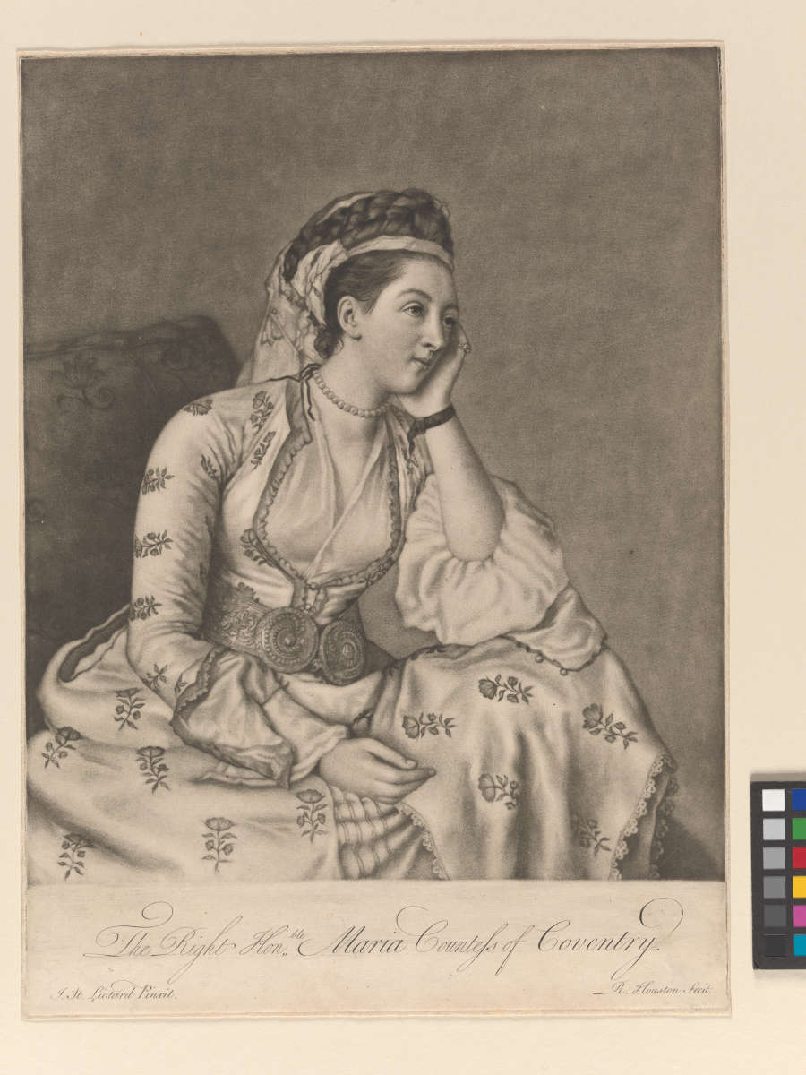 In Plate--Titled in LC:The Right Hon,,ble Maria Countess of Coventry. ; inscribed in LL:J.St. Liotard Pinxit.; inscribed in LR:R. Houston fecit