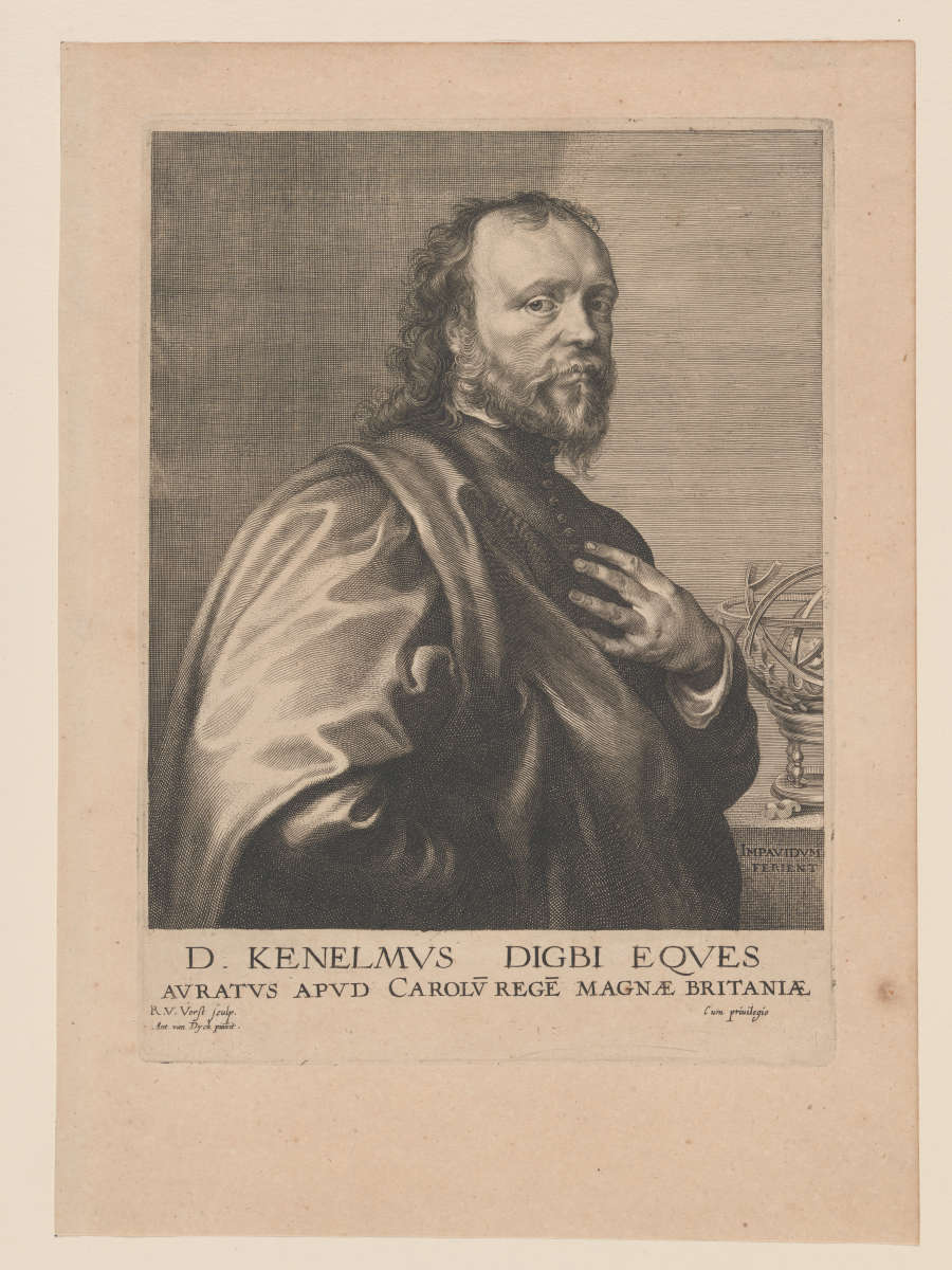 In Plate--In LL:R.V. Vorst sculp./Ant. van Dyck pinxit.; in LR:Cum priuilegio; titled, LC:D. KENELMVS DIGBI EQVES/AVRATVS APVD CAROLV(line over V) REGE(line over E) MAGNAE BRITANIAE; in LR of image:IMPAVIDVM/FERIENT.