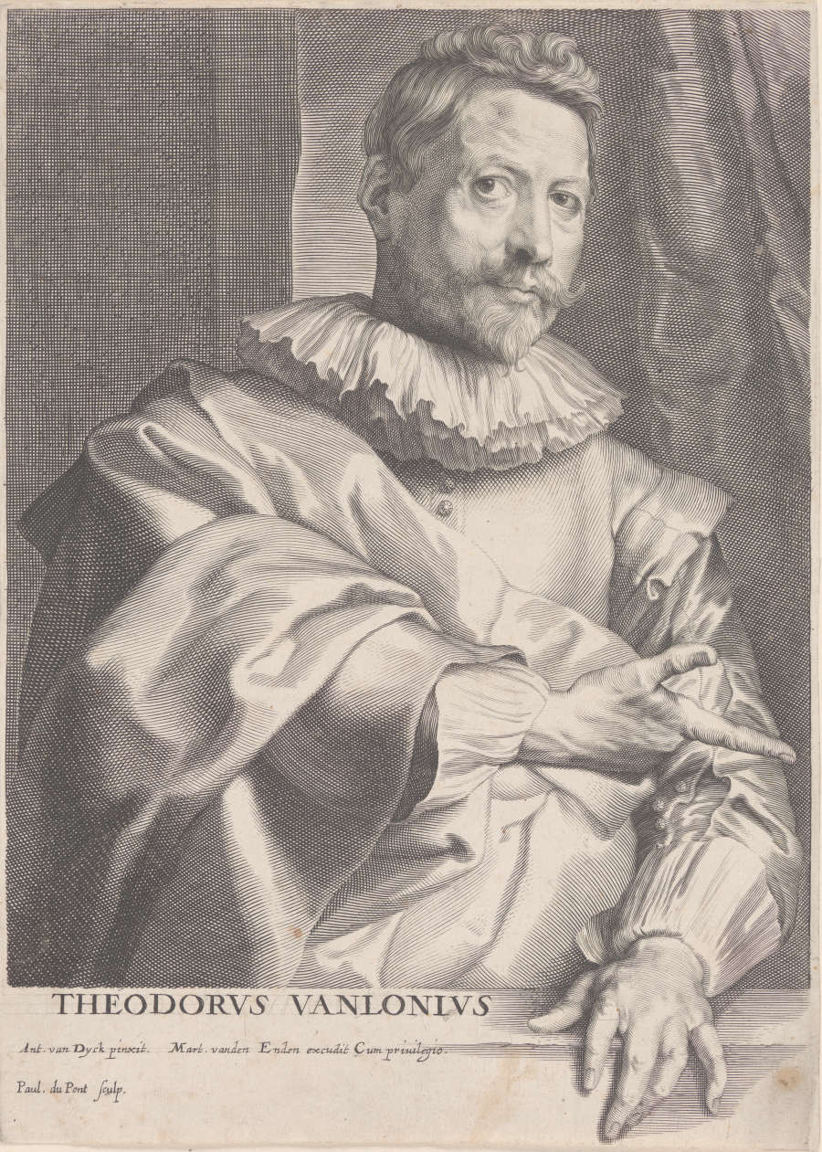 Verso:in pencil, LL:W68II très rare; in LR:1105/4In Plate--Titled, LL:THEODORVS VANLONIVS; inscribed, LL:Ant. van Dyck pinxit.Mart. vanden Enden excudit cum priuilegio./Paul du Pont sculp.