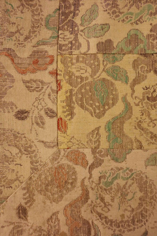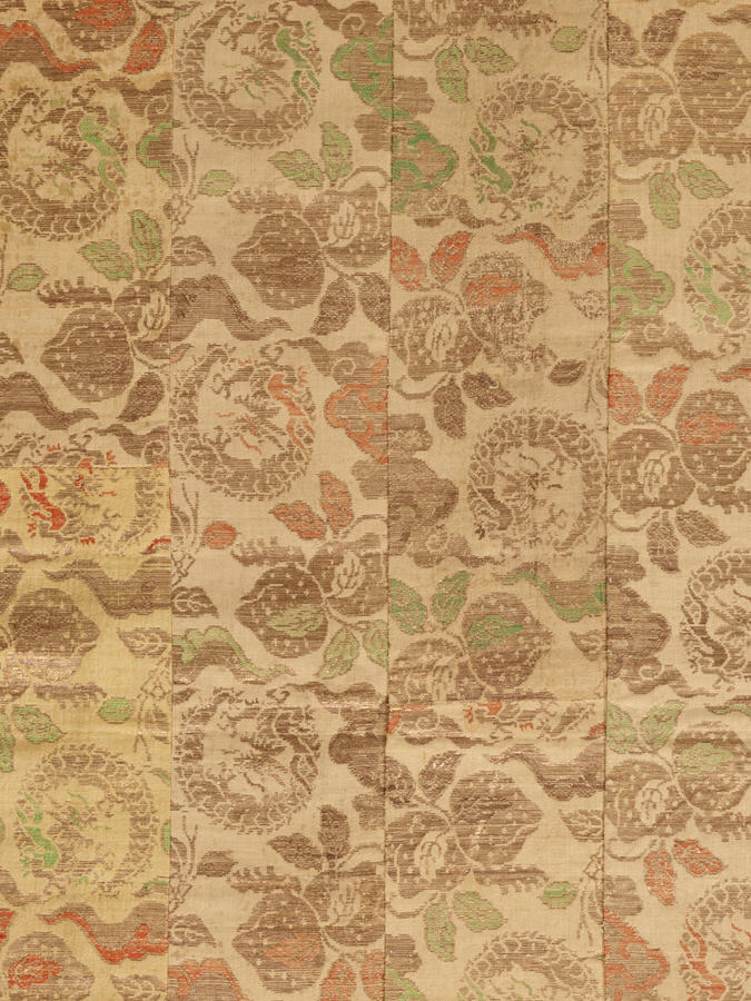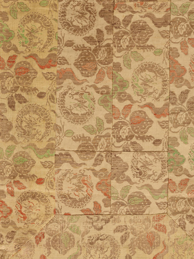Silk and gold-wrapped yarn compound weave, pieced