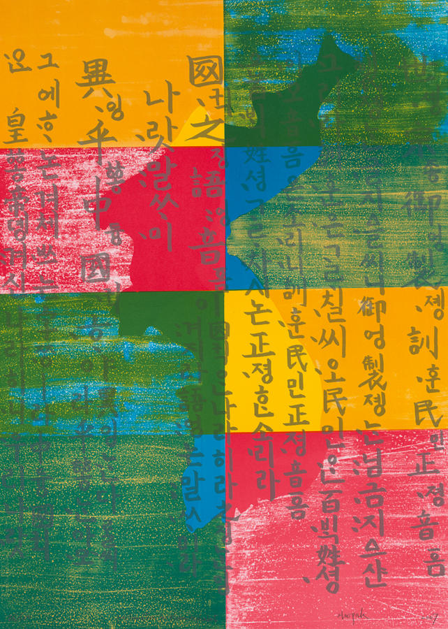 Inscribed in graphite, recto LL: 36/100; LC: Proclamation for Korean Alphabet; LR: [indecipherable] Pak 2007. Inscribed in yellow ink, verso LR: 98