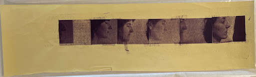 In image at far left: profiles of/some possible/modern day/caryatids./ c 1980/Francesca/Woodman. Verso in graphite at LL: Self Portraits (?)/Blueprint by Francesca/Woodman, given to P.S. by her parents