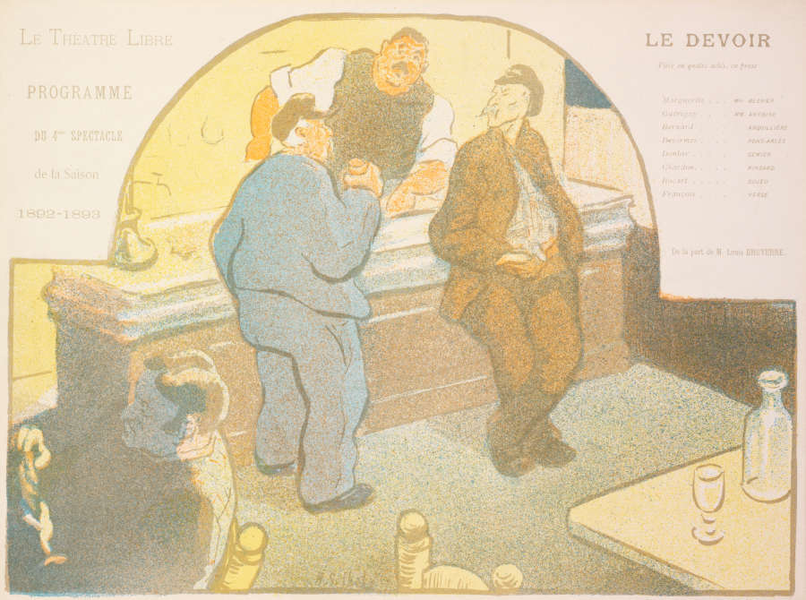 Original--Verso:in pencil, LL:3. 23. 49 A5/PriceIn Plate--Signed, LC:H.G. Ibels; in LR:Paris. Imp. Eugène Verneau. 108.r. Folie-Mericourt; in UL:LE THÉATRE LIBRE/PROGRAMME/DU 4me(me superscribed) SPECTACLE/de la Saison/1892-1893; list of actors, UR:see print for full text.