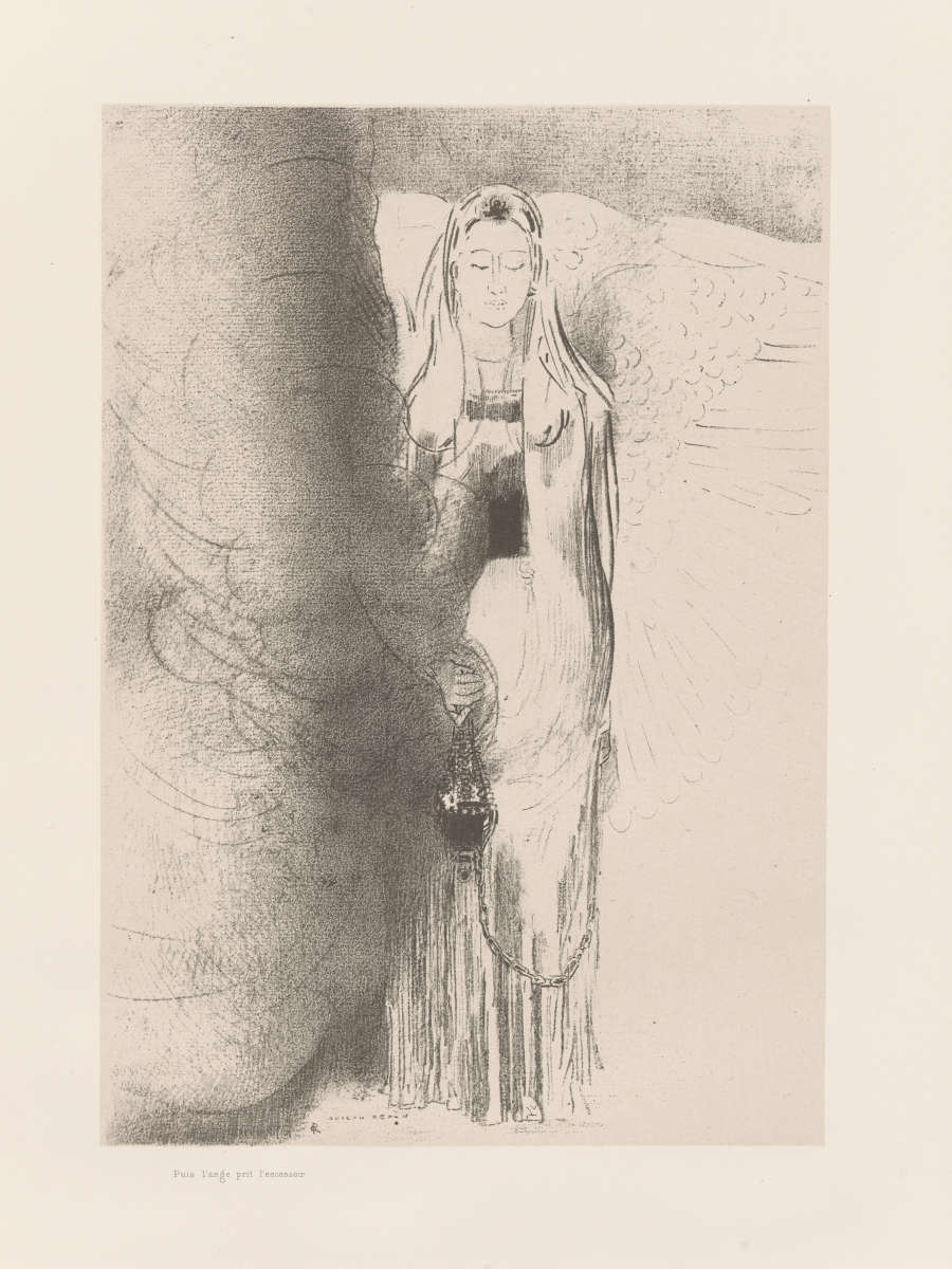 Lettered in image: "Odilon Redon" / "Od.R."; Below image: "Puis l'ange prit l'encensoir."