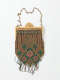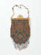 Metal mesh with glass bead embellishment; metal frame and chain