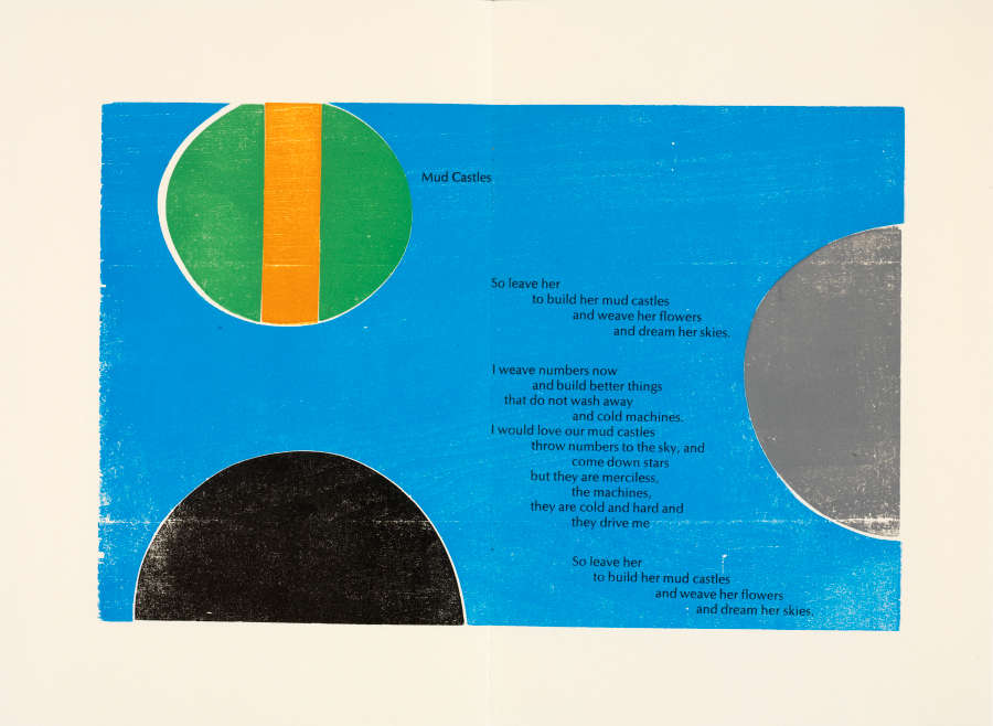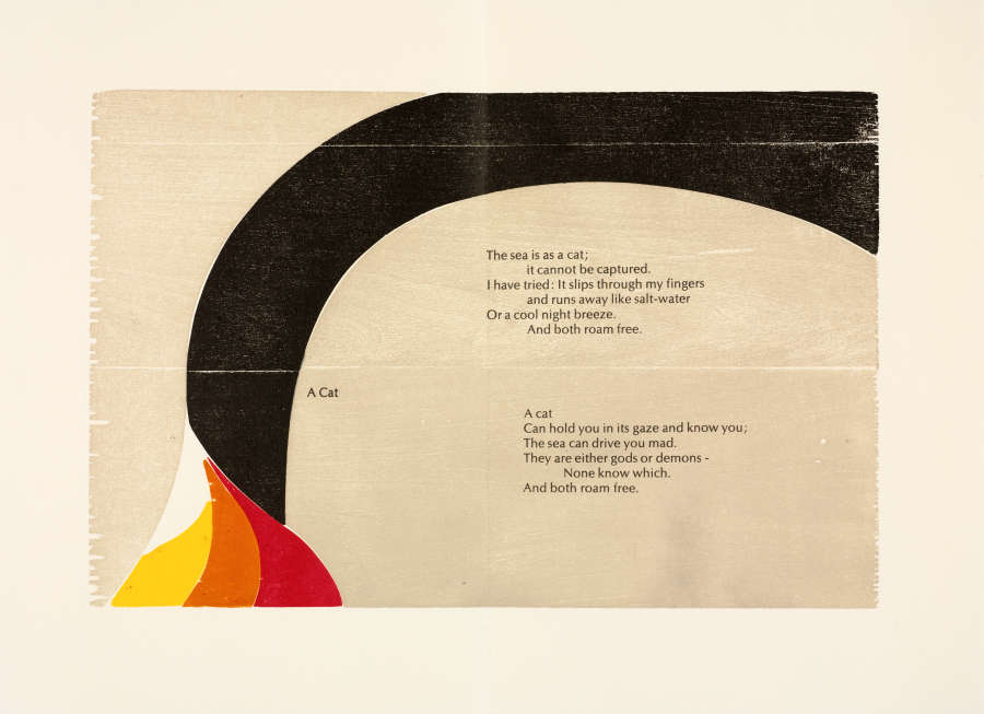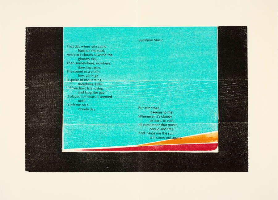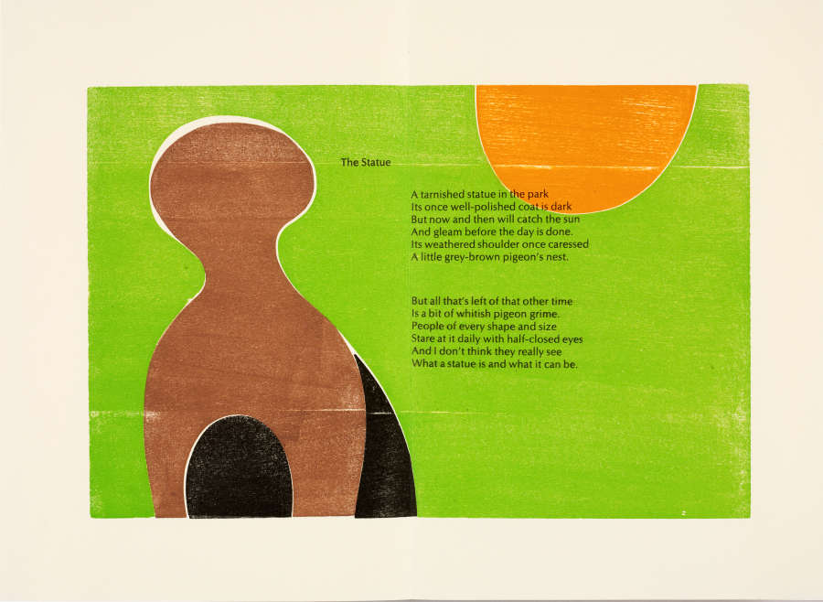 Artist's book with color woodcuts and letterpress on paper; poems by Sara Rosenbaum
