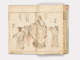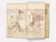 Inscription on inside of front cover, top left, and bottom right quadrant in pencil:Mangwa #5Octagonal label adhered to inside of front cover, top right with inscription in ink: 31.394(.5)/Hokusai/Mangwa Vol. 5