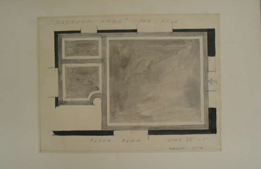On recto in block printed pencil: " "RAYNHAM ROAD" THE HALL / FLOOR PLAN / SCLAE 3/8"=1' / THEDLOW INC"