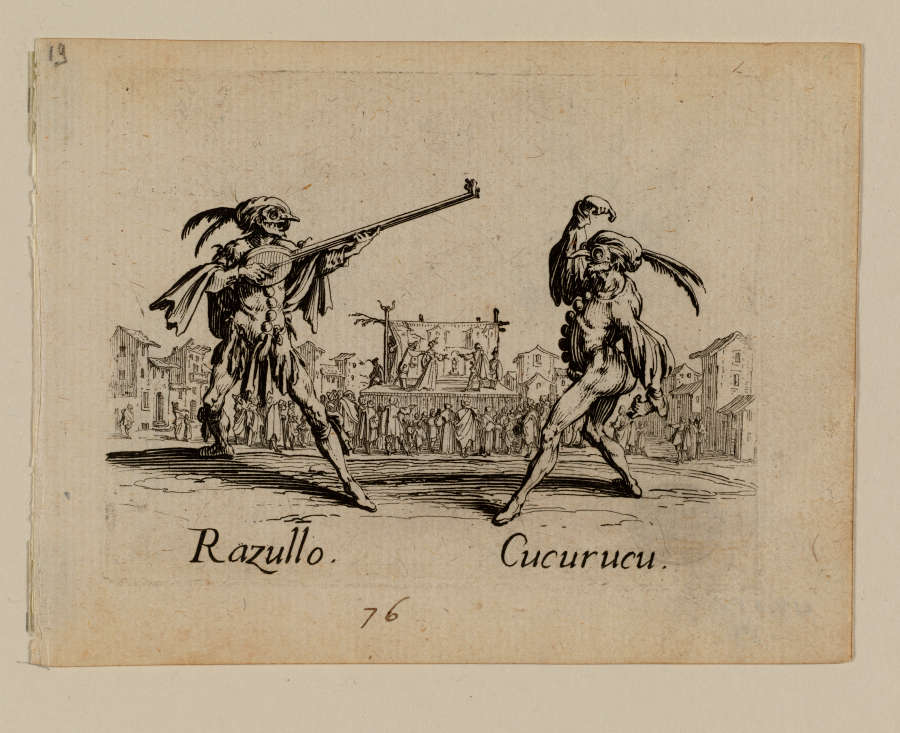 Original--Recto:in pencil, UL:19; in brown ink, LC:76 In Plate--In LL:Razullo; in LR:Cucurucu