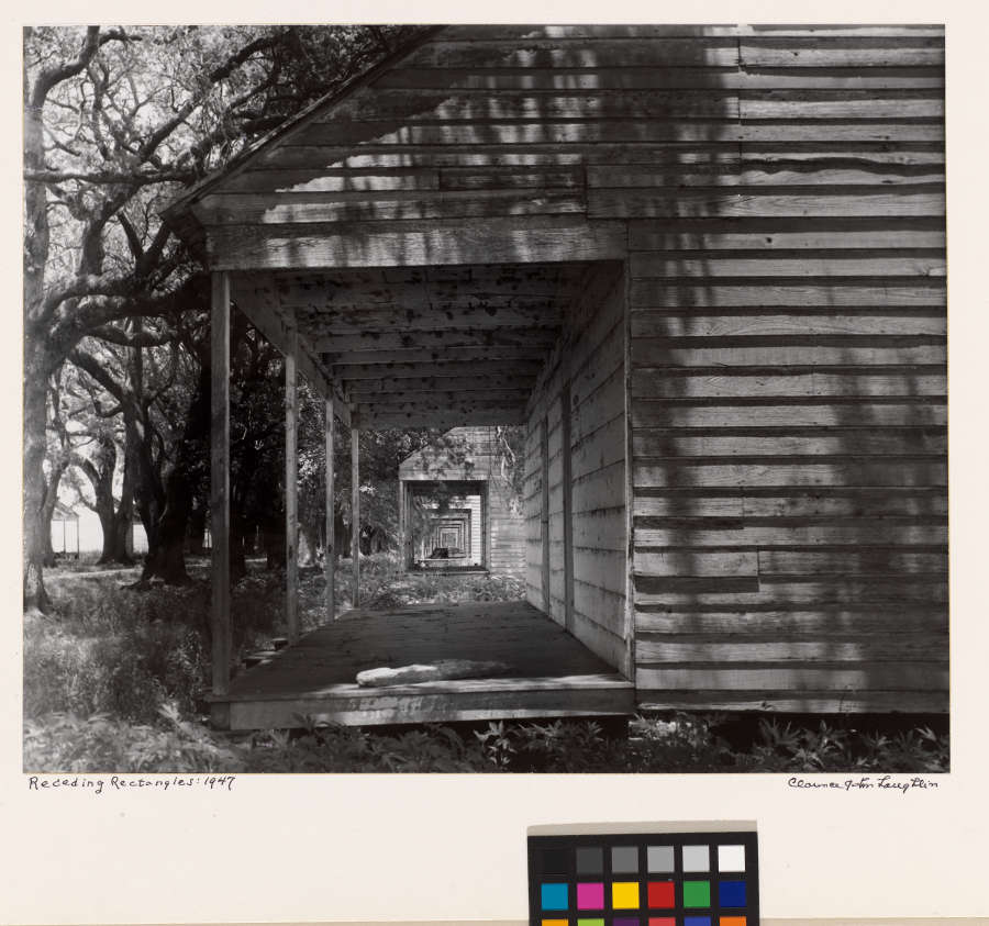 Signed, dated and titled across bottom:Receding Rectangles1947Clarence John Laughlin