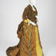 Silk plain weave with cotton net inserts and silk embroidery, applique, and fringe