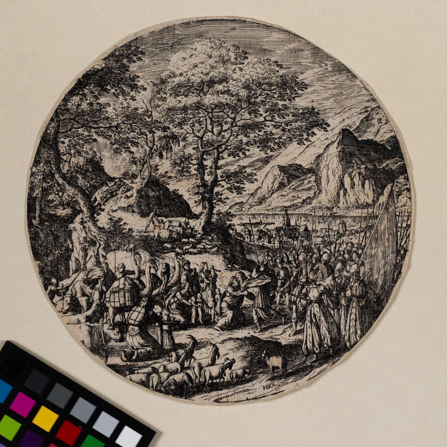 Verso: in pencil inscribed, center:HANS BOL/ESAU+ JACOB/Hollstein p. 39In Plate--Signed, LR:[HBOL monogram]