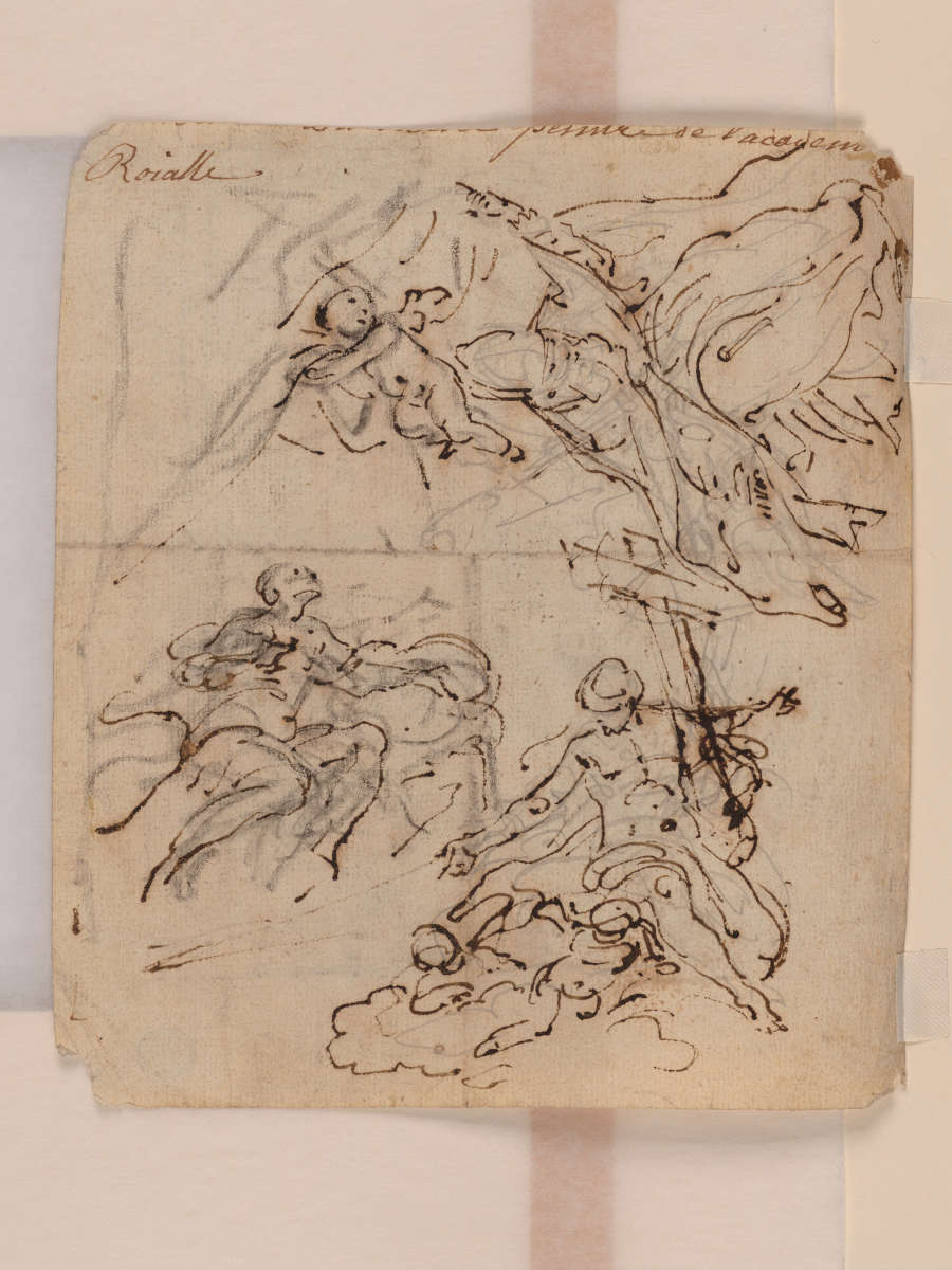 Verso: inscription in pen and ink, partially cut: "...peintre de l'academie Roialle"