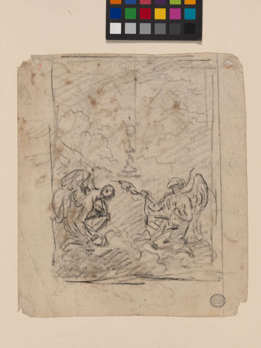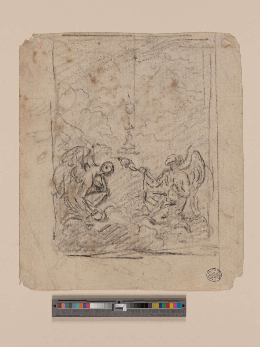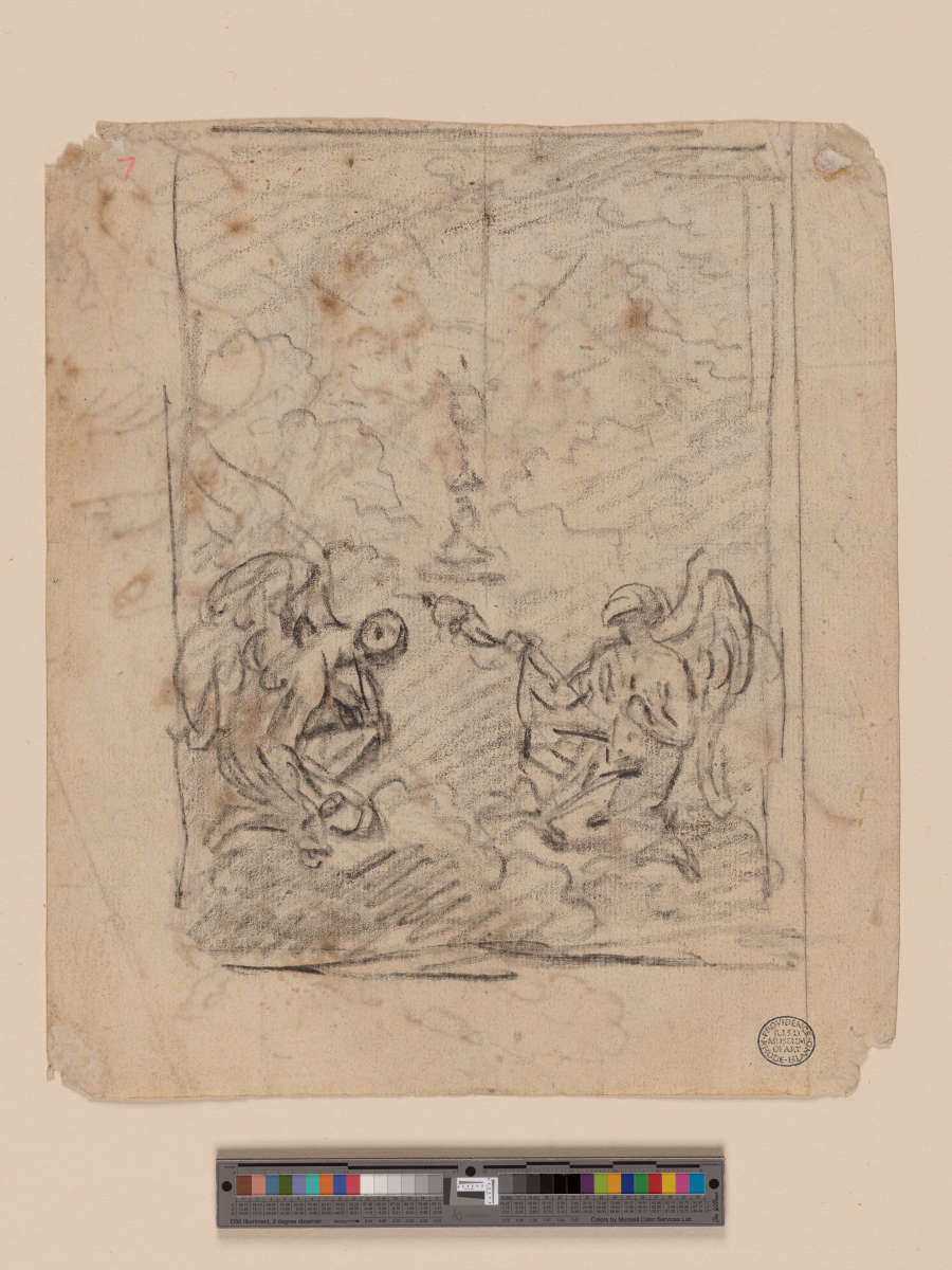 Recto: Glorification of the sacrament; Verso: Studies of a bishop saint, Christ with the Cross, a supplicant figure and an angel