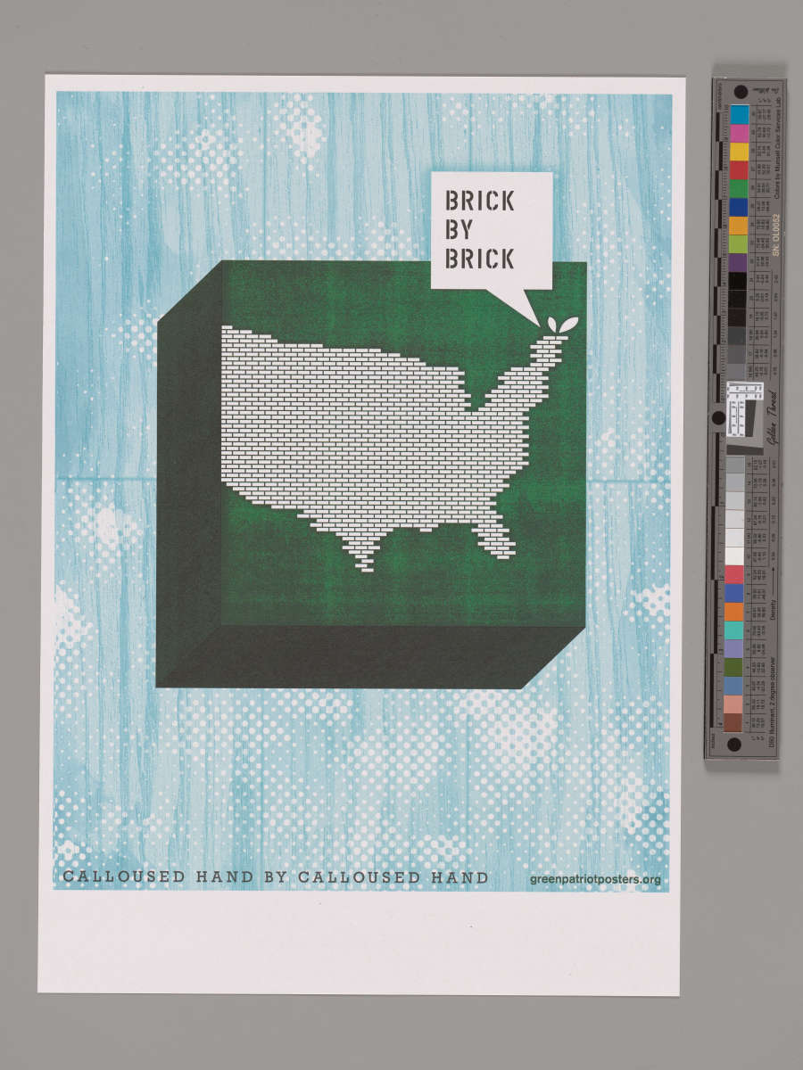 On verso, printed at top center: GREENPATRIOTPOSTERS.ORG; at bottom center, printed description of poster by artist.