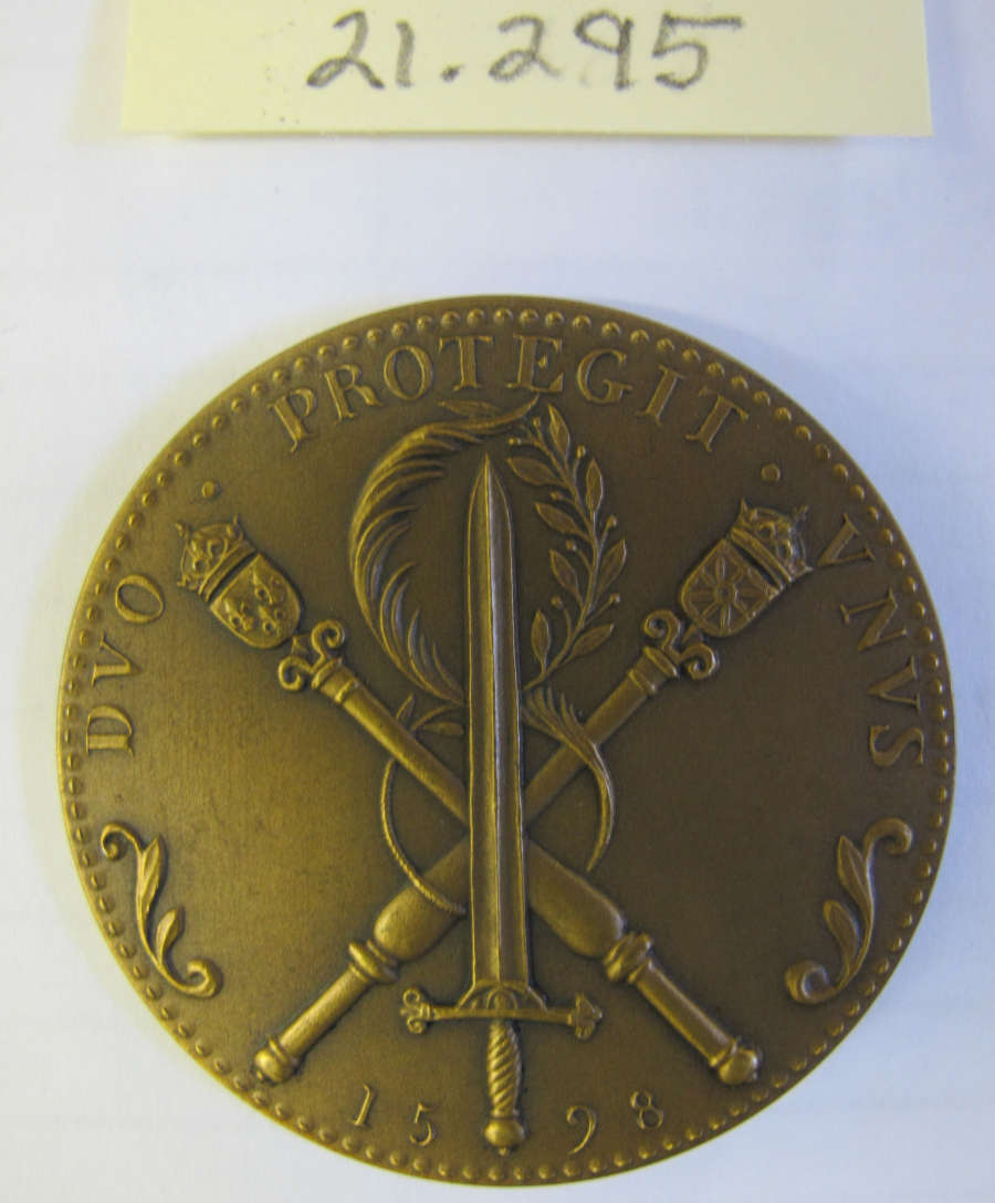 Obv: HENRICUS.IIII.D.G.FRANCOR.ET.NAVAR.REX.Rev: DUO.PROTEGIT.UNUS 1598.