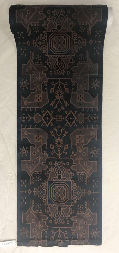 jaquard woven, brown on black silk, Turkish carpet pattern