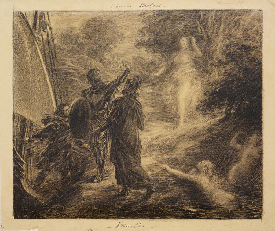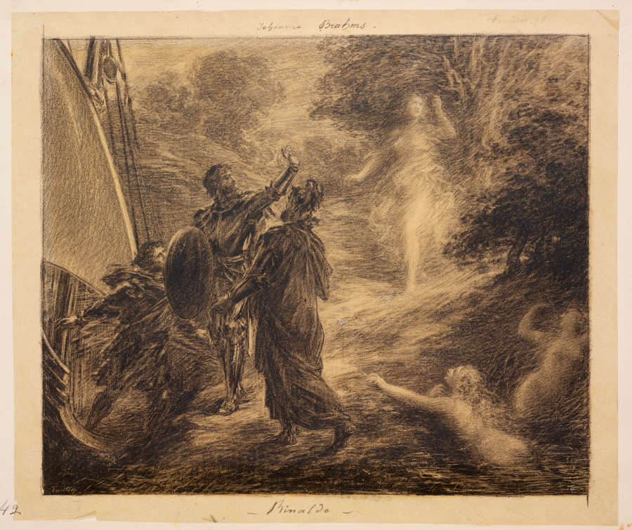 Incised signature at ll: Fantin; inscribed in black crayon, lc: Rinaldo; inscribed in black crayon, uc: Johannes Brahms; inscribed in graphite, ur: Fevrier -78