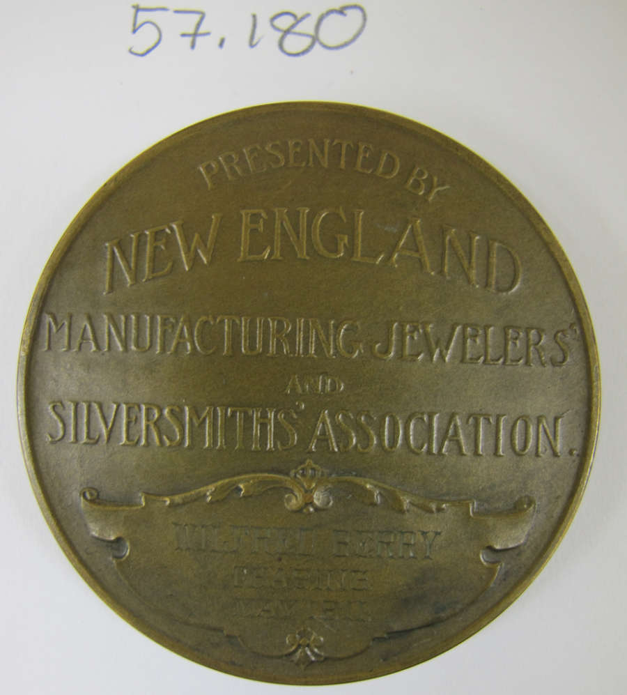 Obv: DEPARTMENT OF JEWELRY AND SILVERSMITHINGR.I.S.D.Rev: WILFRED BERRYCHASING MAY1911; ...BY NEW ENGLAND MANUFACTURING JEWELERS' AND SILVERSMITHS' ASSOCIATION.