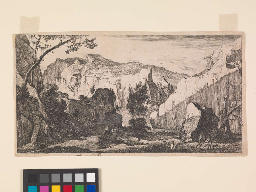 Original--Verso:inscribed in LC:Roeland Rogman (underlined) D' Amsterdam 1597 - 1680/H 26 Le quartier du rocher ler (illegible) L.B1 26/Tigr: 4 vol. neg 32 le Blanc 26/D.26; in LL:Sig; in LR:(illegible) RembrandtIN Plate--numbered in LC:2